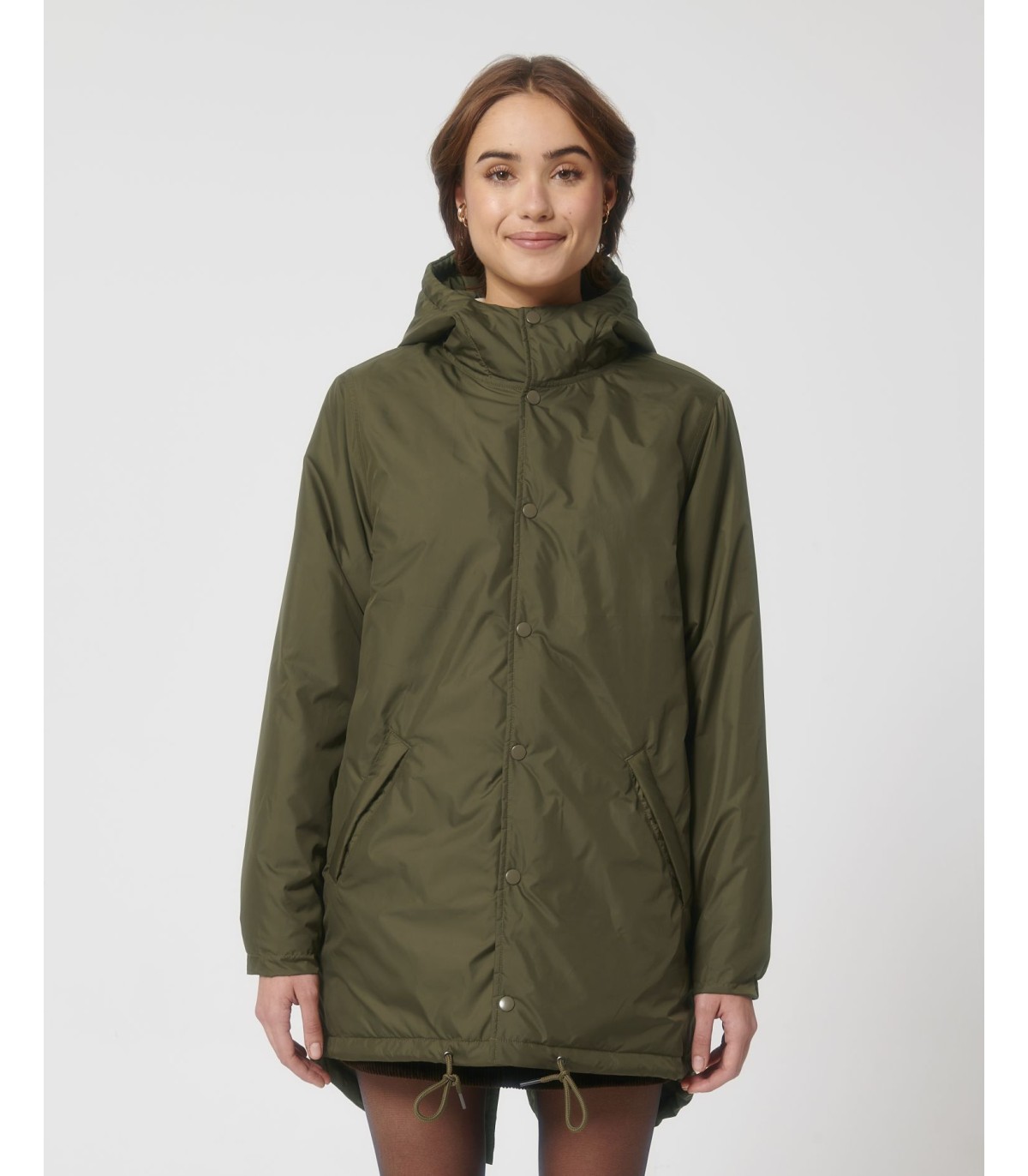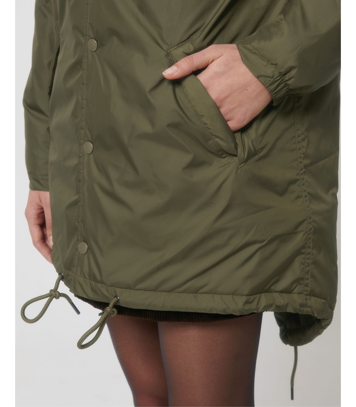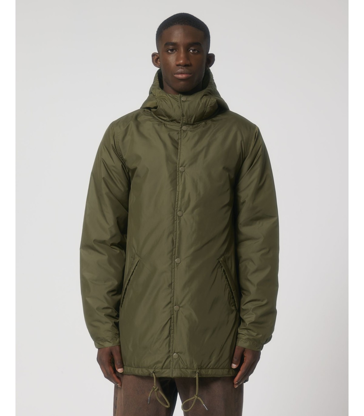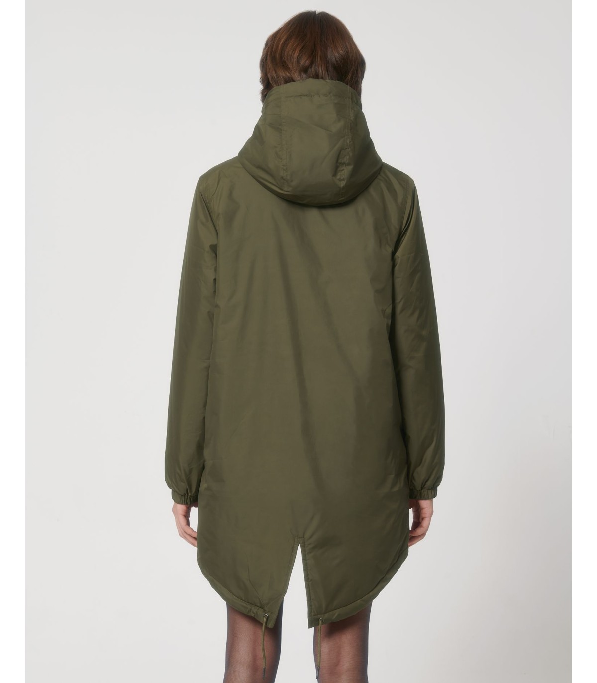 - Capuche doublée avec arrêt en plastique ajustable et cordon élastique à l’intérieur