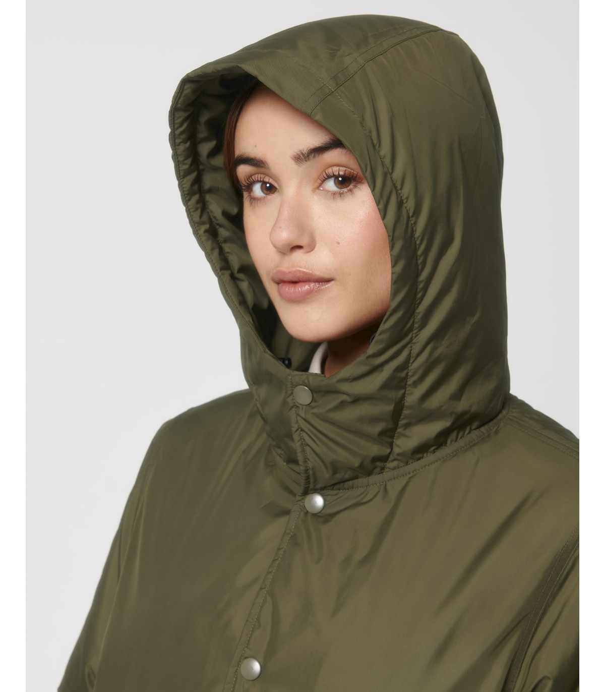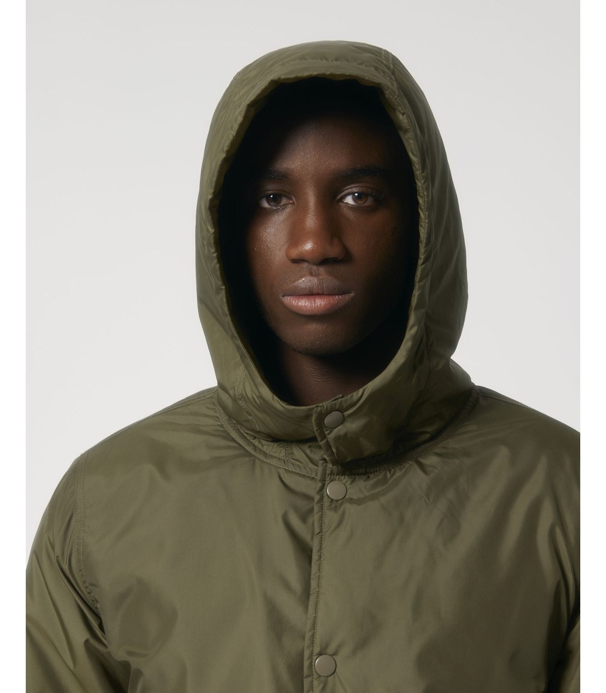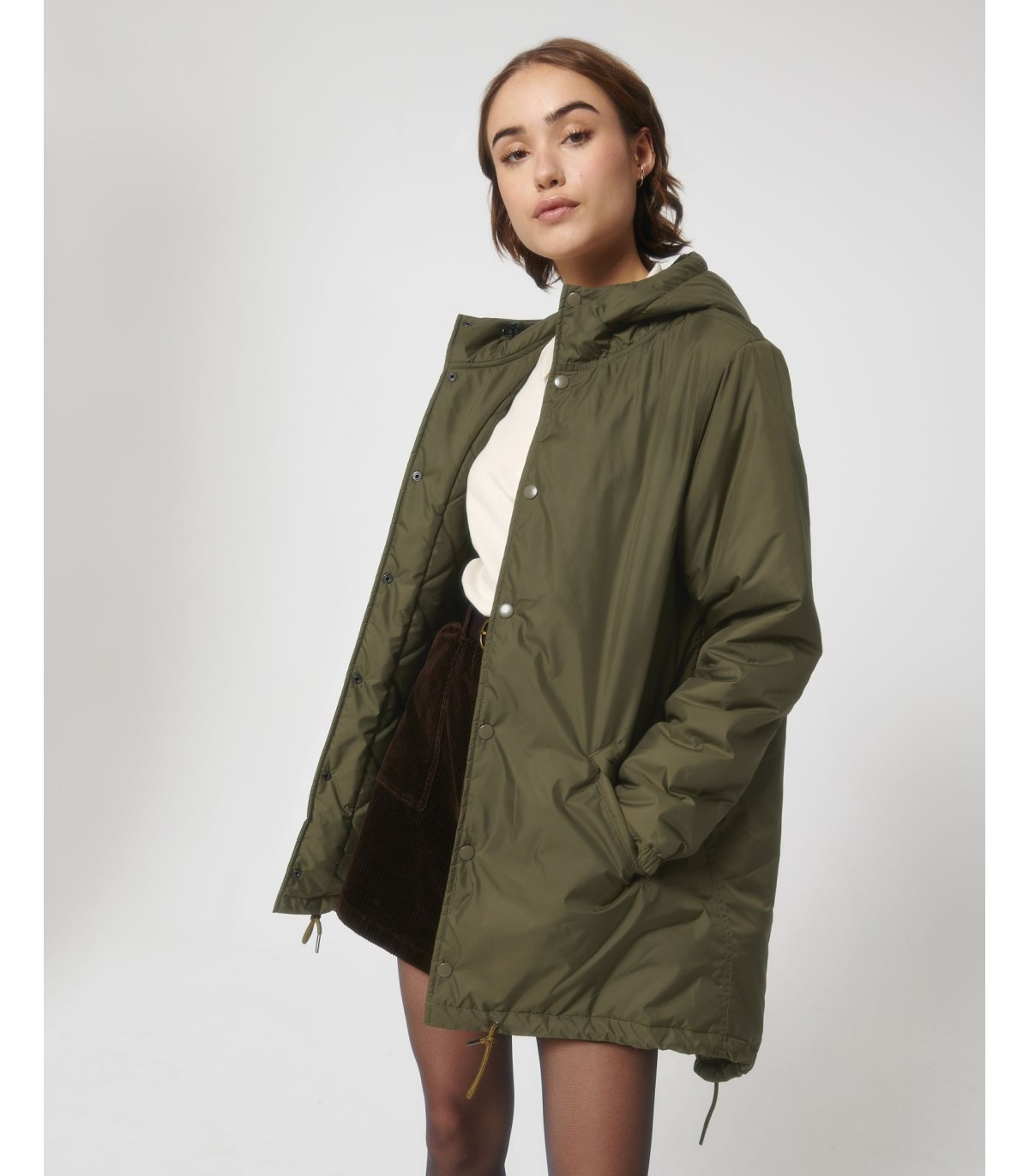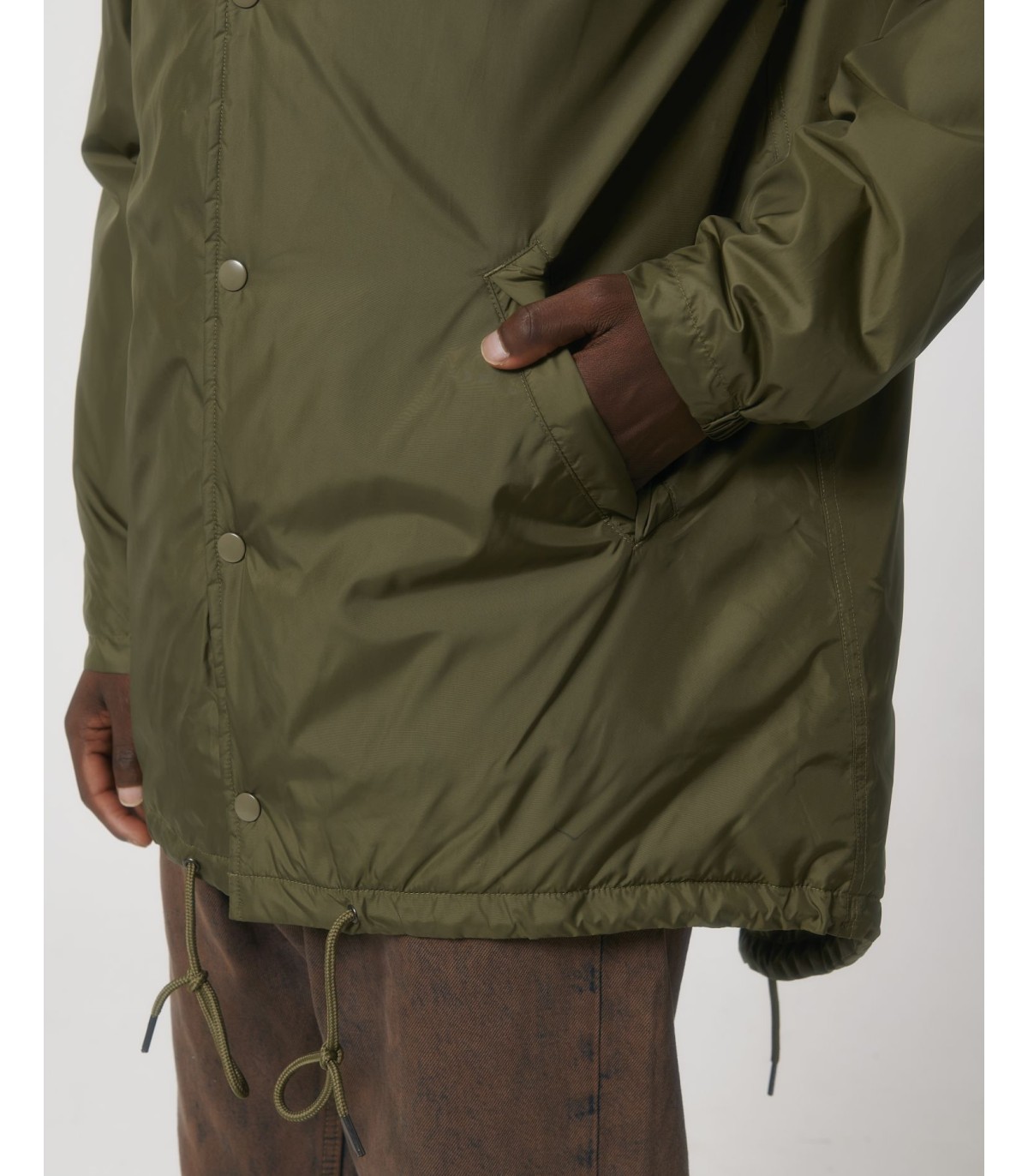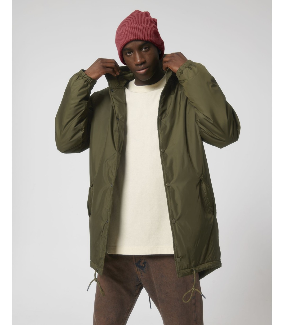 - Capuche doublée avec arrêt en plastique ajustable et cordon élastique à l’intérieur