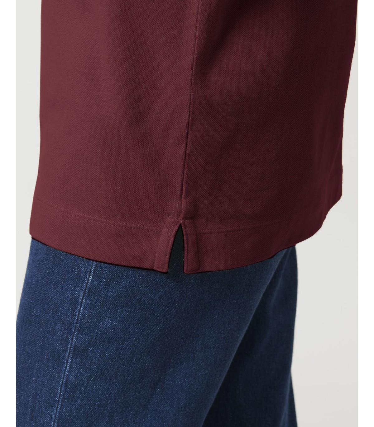 - Bande de propreté en jersey simple et épais à l’intérieur du col