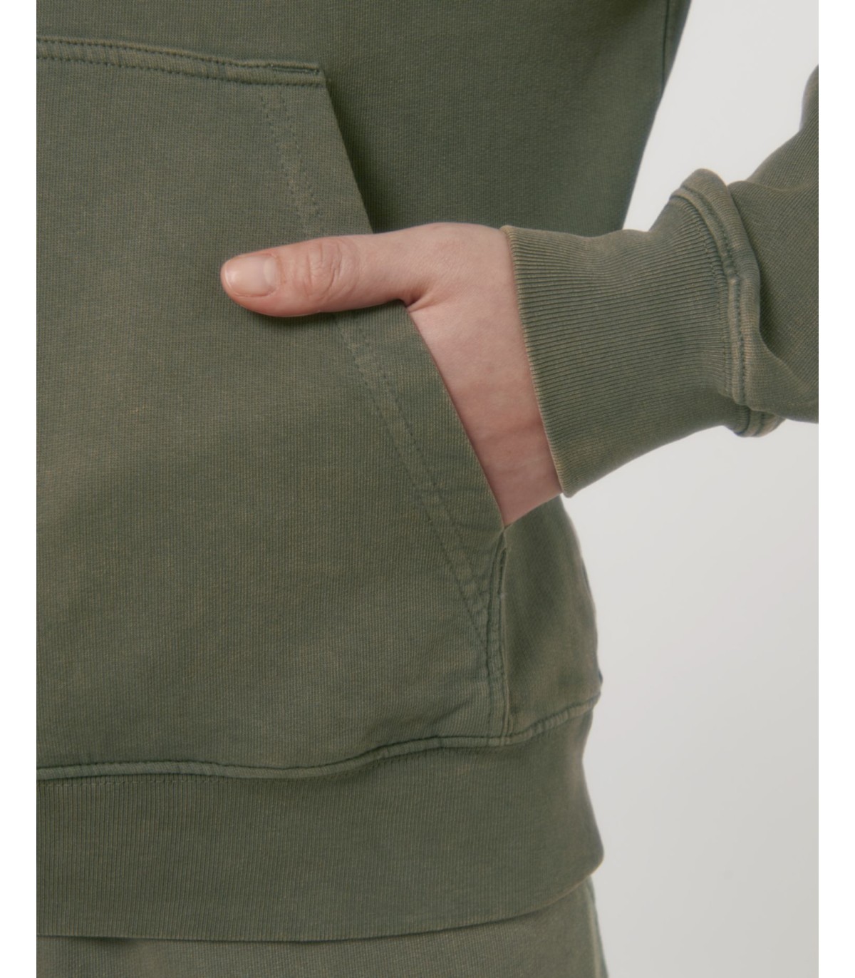 - Finition bord-cotes 1/1 aux poignets et bas du sweatshirt