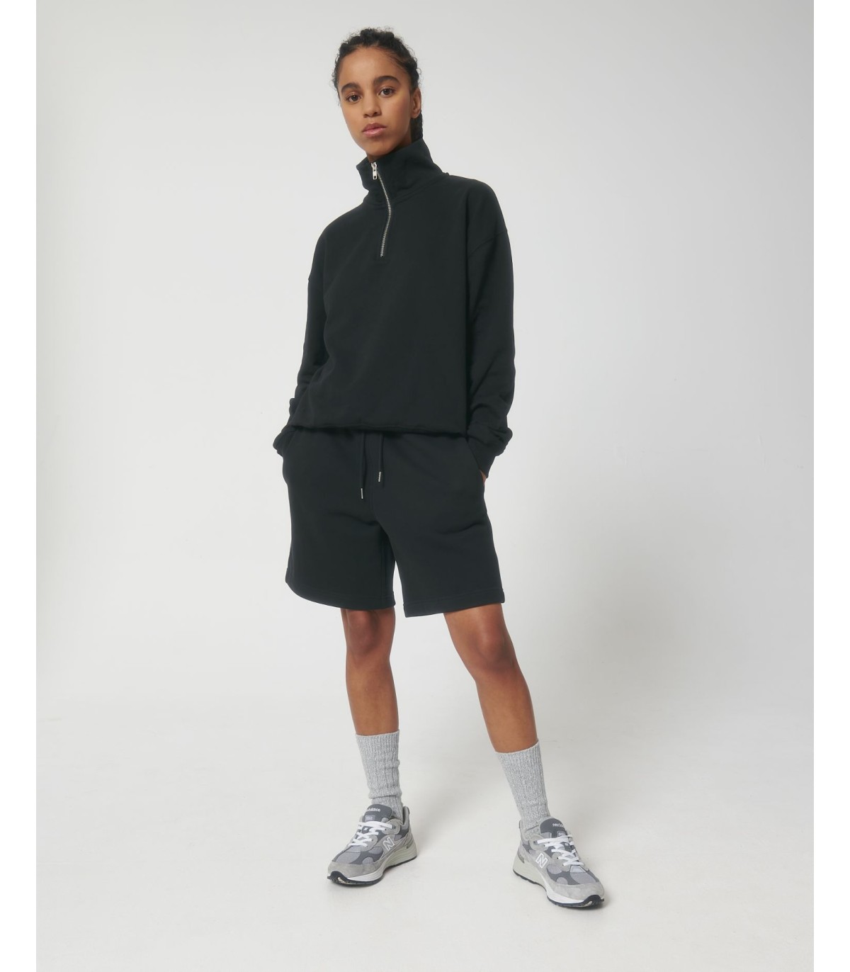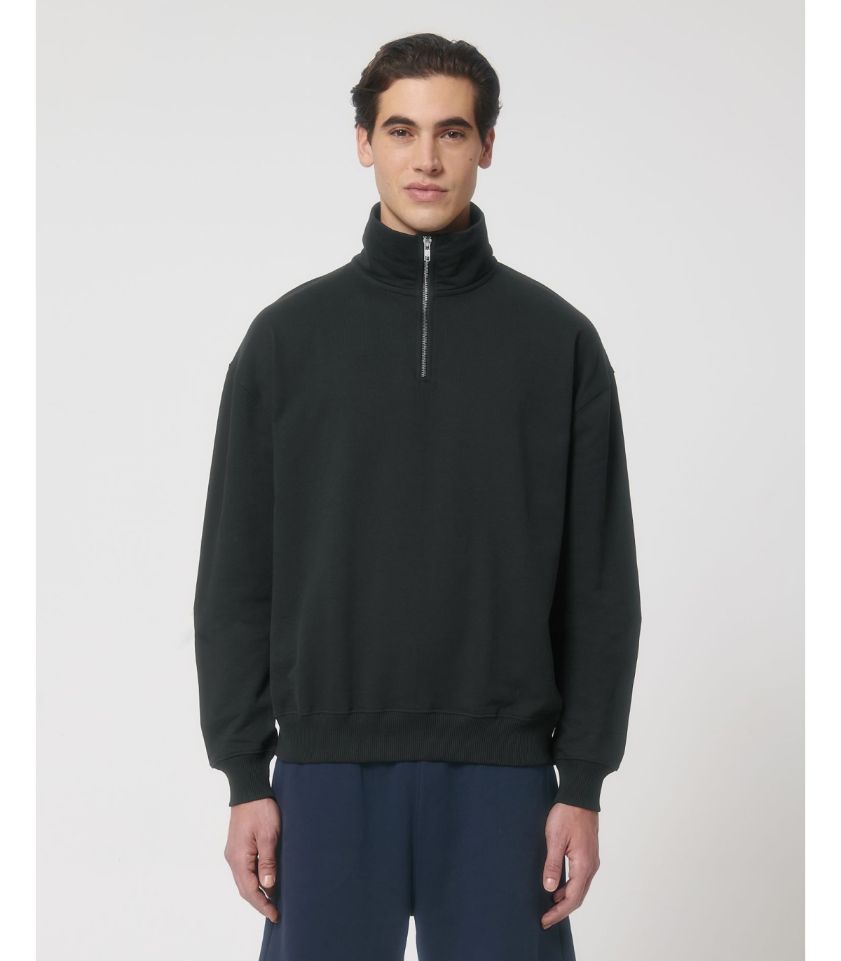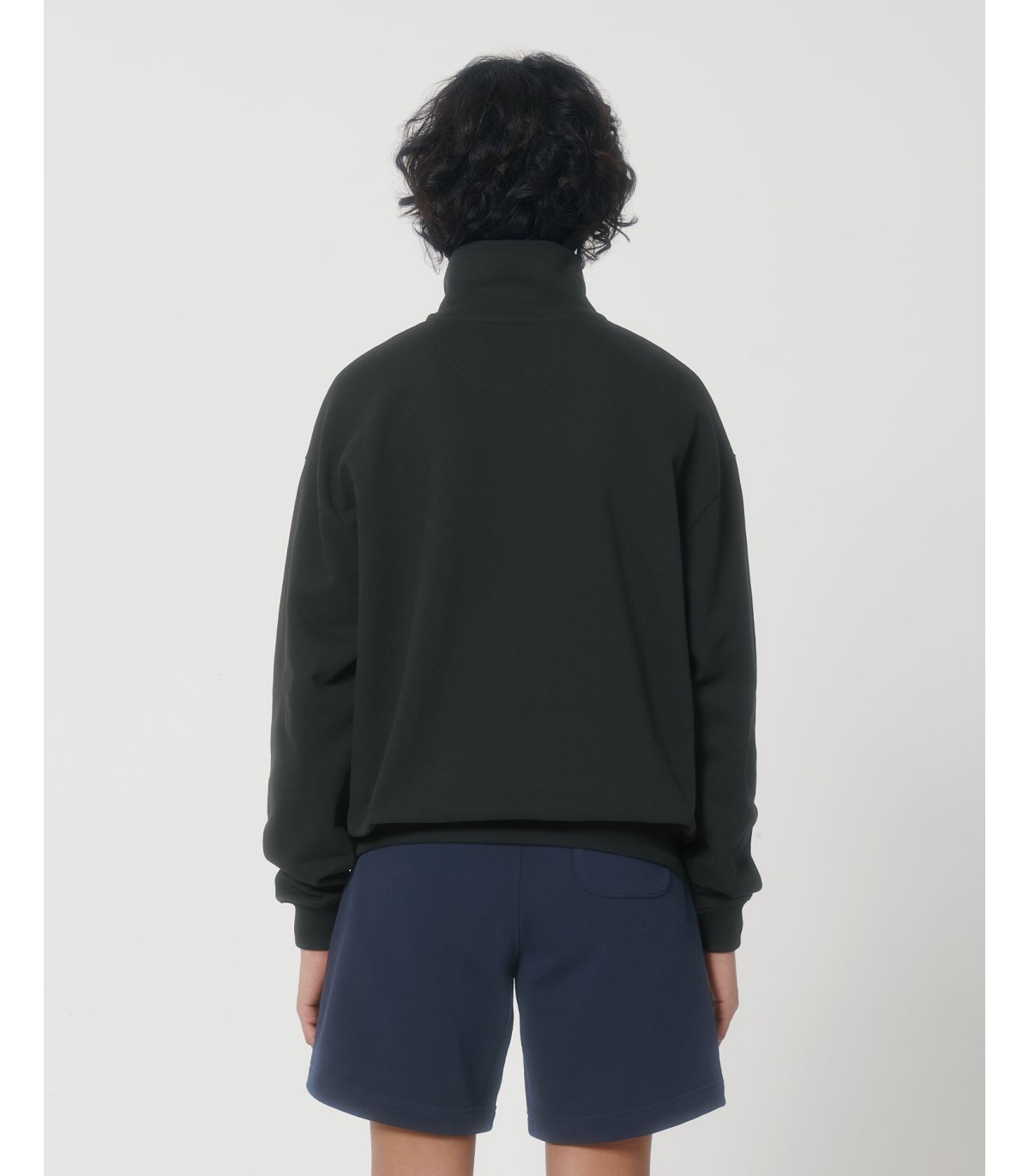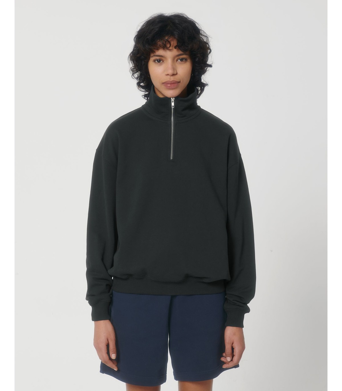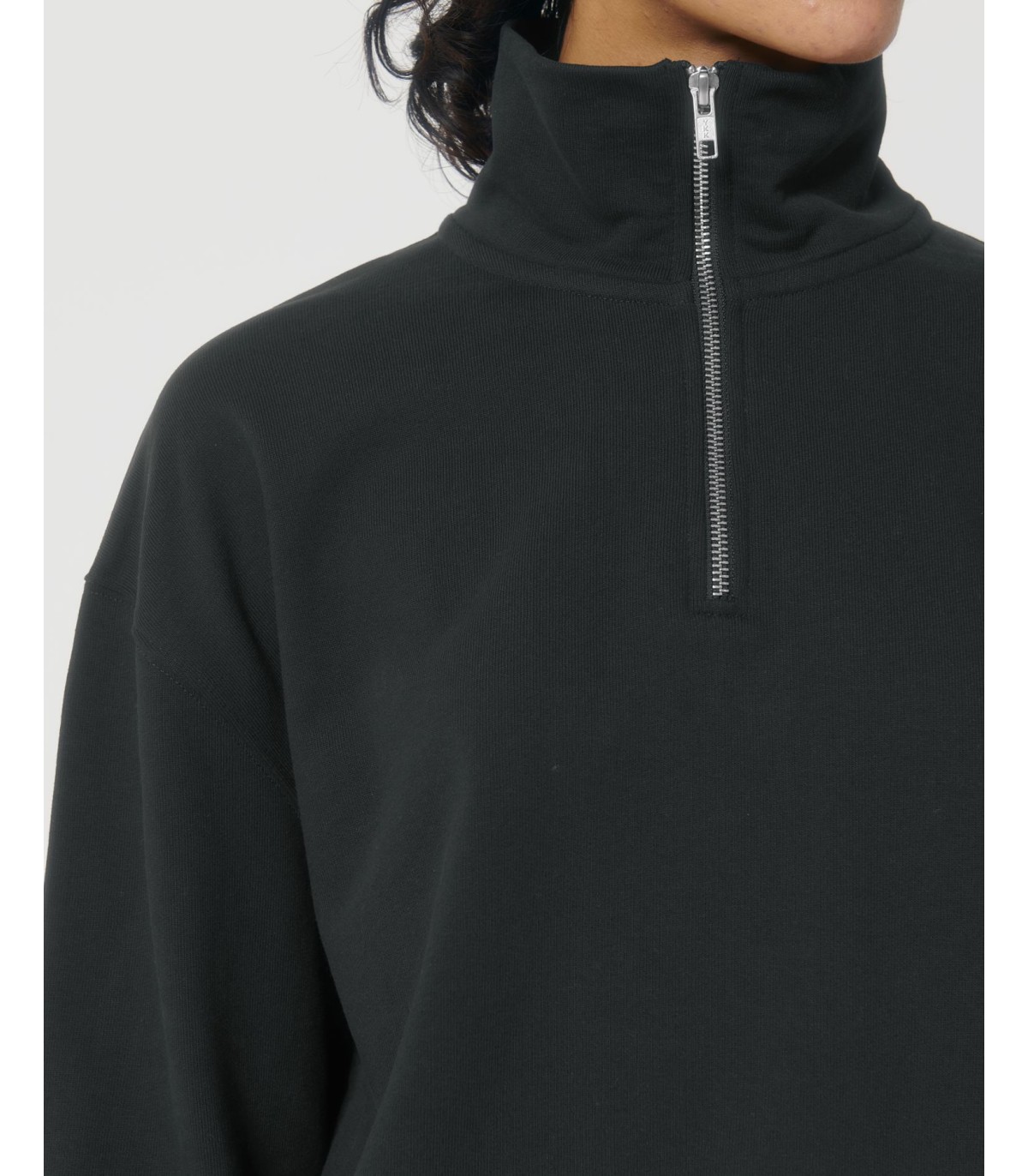 Sweatshirt unisexe à fermeture éclair sur un quart, coupe boxy et sec au toucher