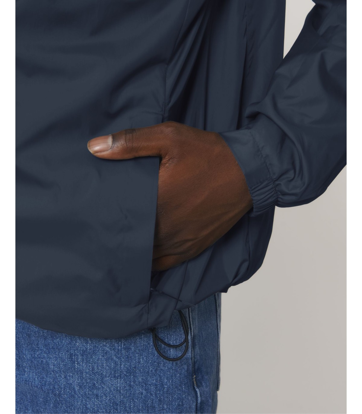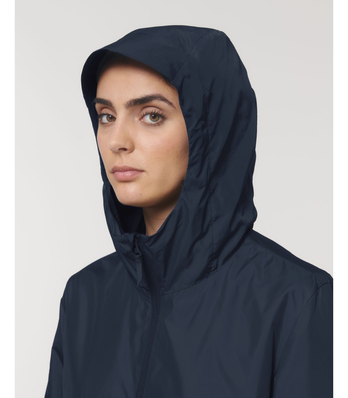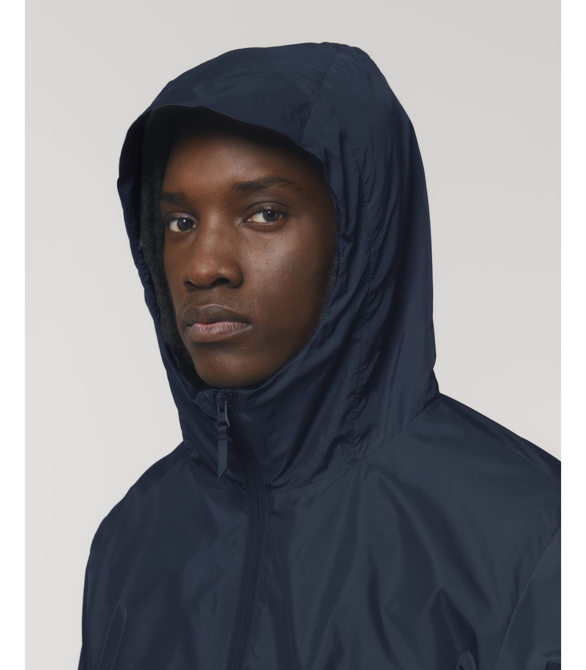 Capuche doublée avec arrêt en plastique ajustable et cordon élastique à l’intérieur