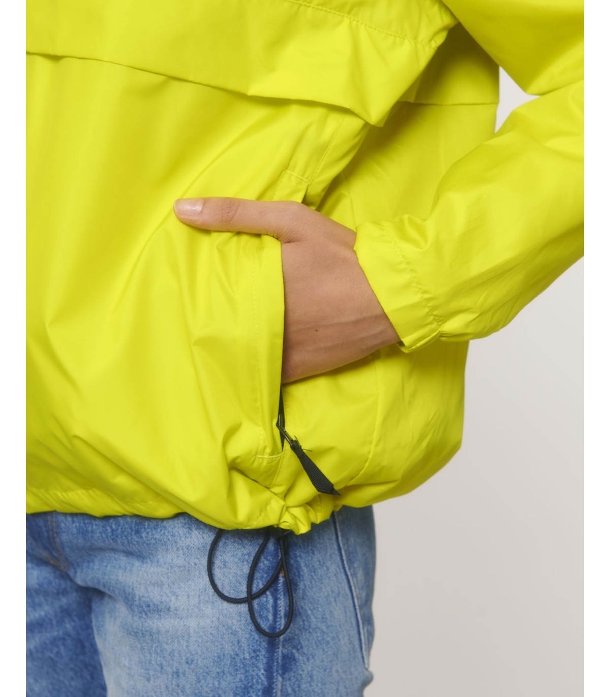 Capuche doublée avec arrêt en plastique ajustable et cordon élastique à l’intérieur