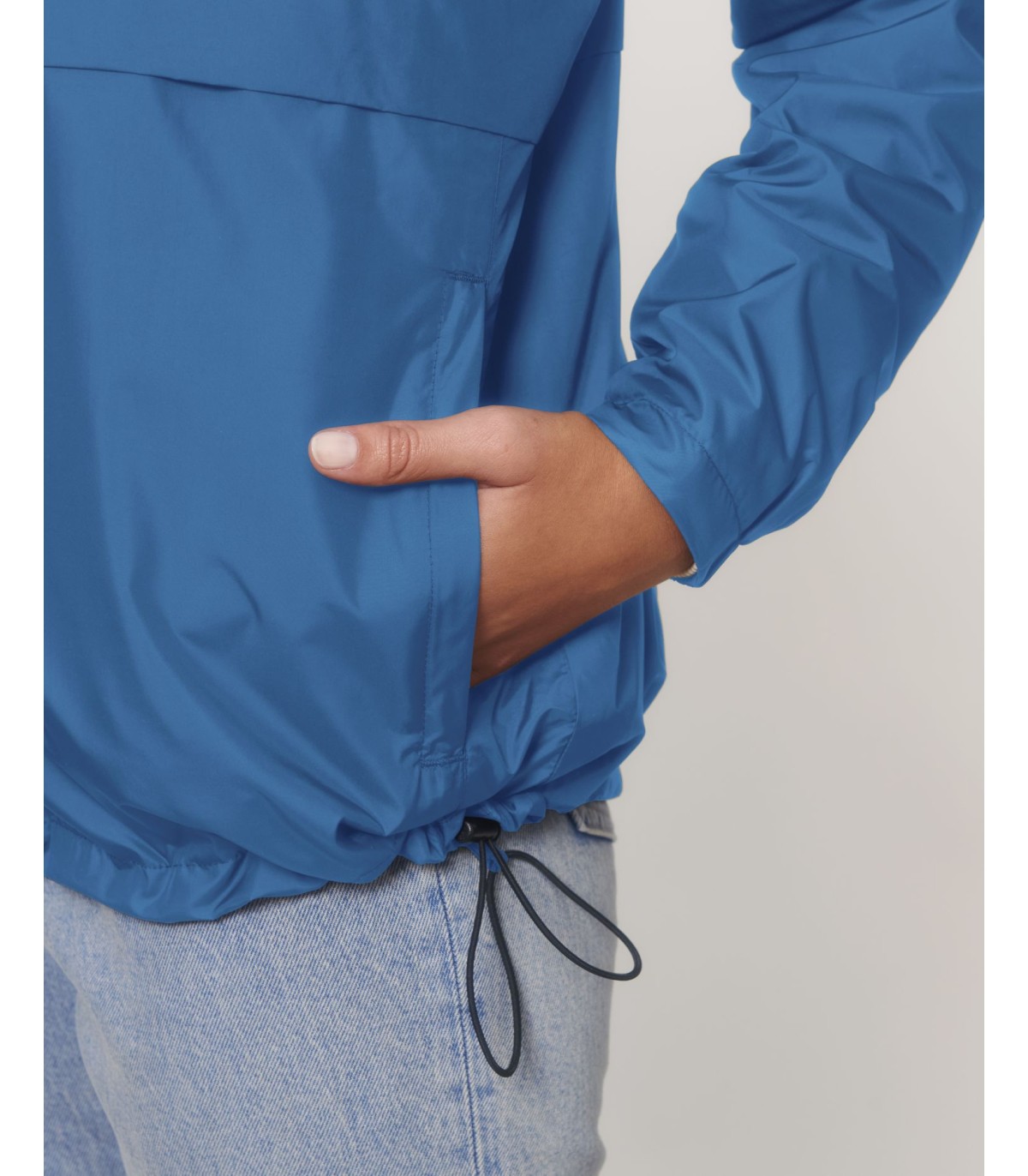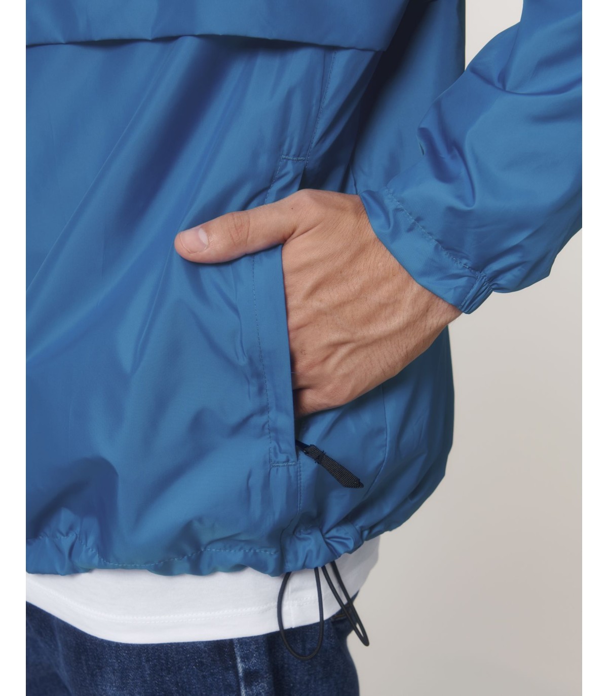 Capuche doublée avec arrêt en plastique ajustable et cordon élastique à l’intérieur