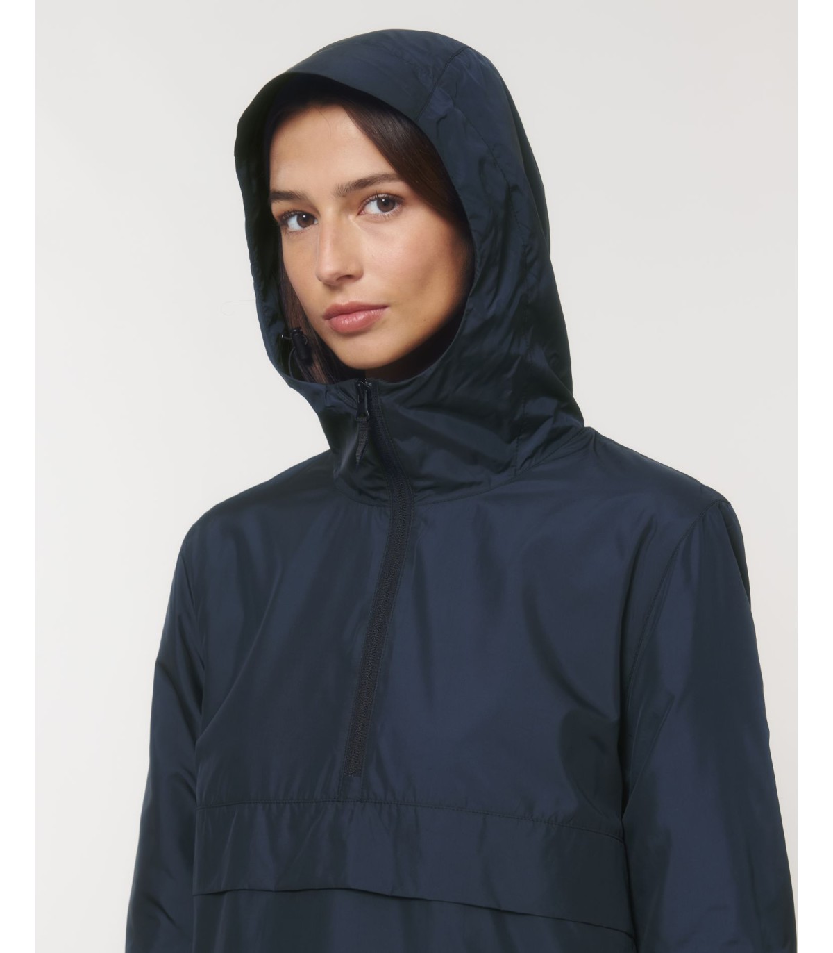Capuche doublée avec arrêt en plastique ajustable et cordon élastique à l’intérieur